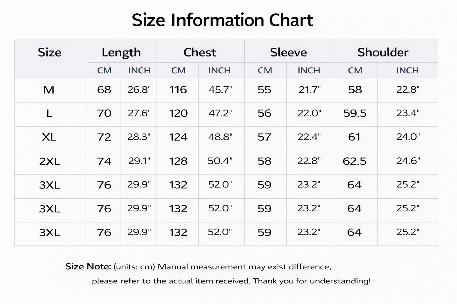 - Suggestion:*This data was obtained from manually measuring the product, it may be off by 0.03-0.06 INCH/1-3 CM